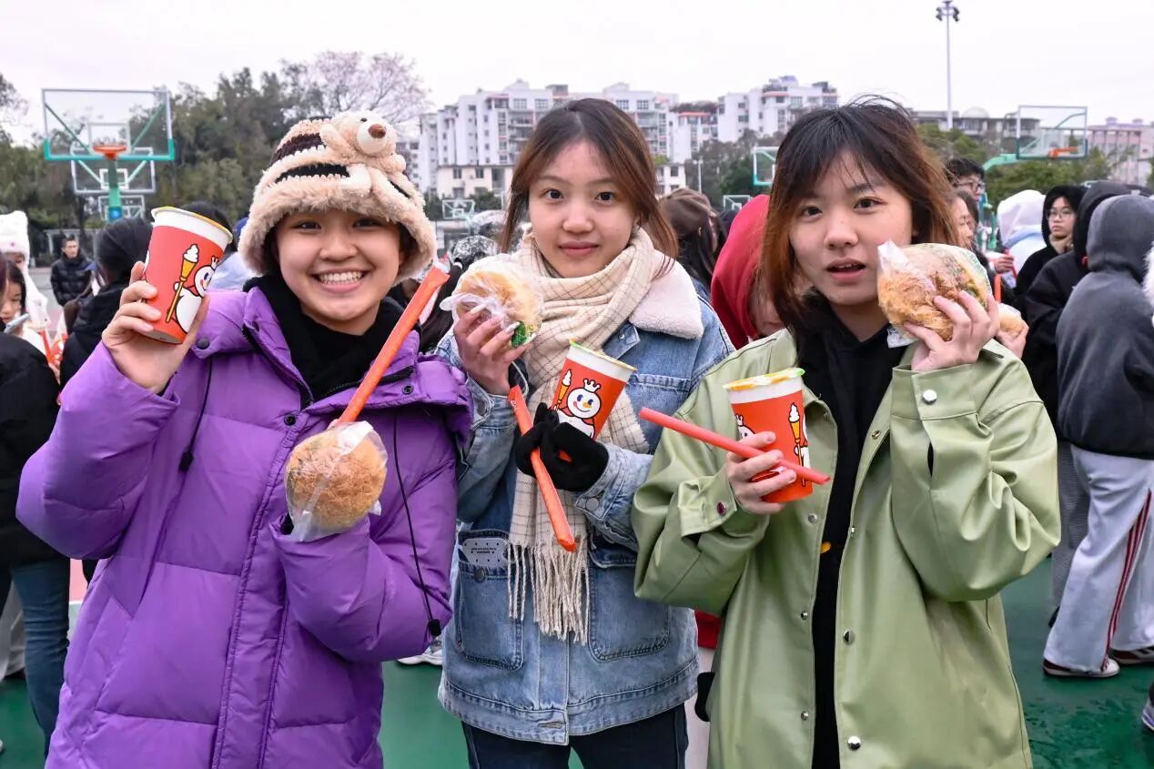 随后,师生代表一同将满载关怀的慰问品送至教官与同学们手中,让这份冬日的暖意真切流淌于每个人心间。学院的牵挂令同学们深受感动,大家一致表示,必将把这份鼓励化为训练中的不懈动力,以更加奋发的心态、更加坚韧的意志完成后续任务,扎实走好大学第一步,以实际行动回应学院的期待与栽培。