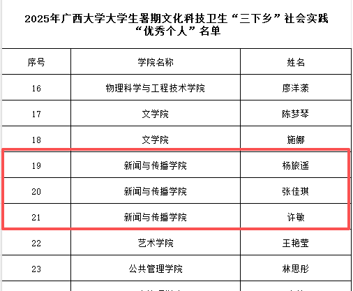 近日,2025年beats365亚洲版大学生暑期文化科技卫生“三下乡”社会实践活动评优结果正式公布。经各学院团委、学生组织认真组织申报,校团委组织评审和论证,并经公示无异议后,评出优秀单位6个、优秀团队27个、优秀个人31名、优秀调研报告30篇。我院在本次评选中表现优秀,我院在集体项目和个人项目的评比中均有所斩获。