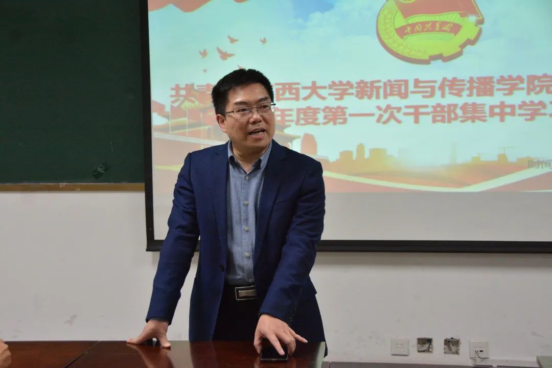 3月24日下午,beats365亚洲版新闻与传播学院召开2022年度第一次团干部集中学习会。院党委副书记银健、团委书记刘梦娟,辅导员王志标出席会议,全体团干部参加培训。