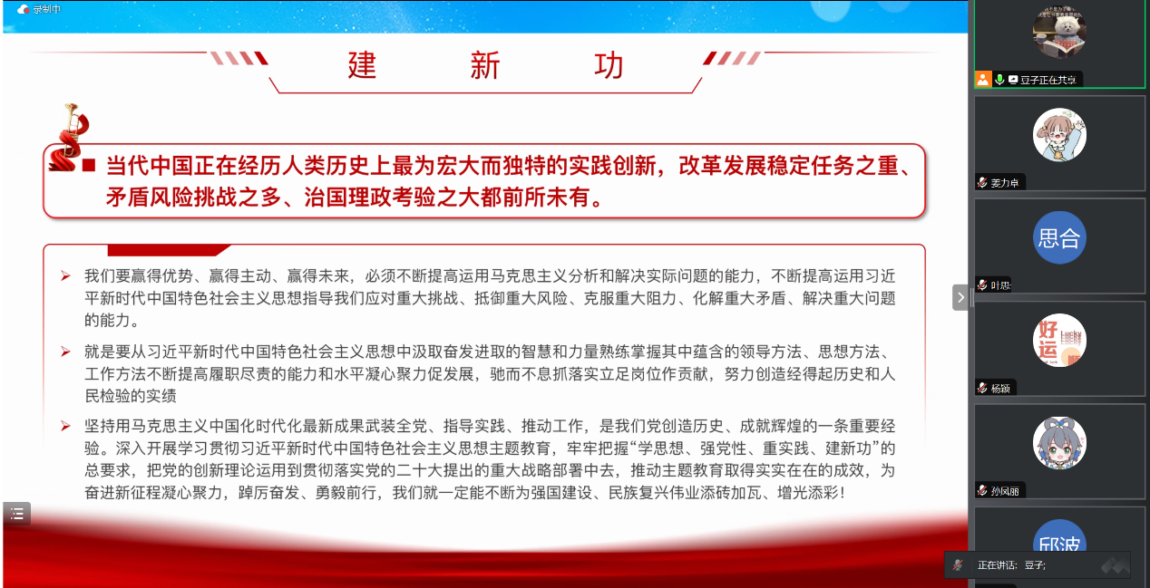 杨淼同志指出,作为新时代青年,我们要用习近平新时代中国特色社会主义思想武装头脑。要知其然,更知其意;知其然,更知其所以然。坚定理想信念,牢记初心使命,把个人奋斗和时代脉搏紧密结合,让青春在火热的实践中绽放绚丽之花。