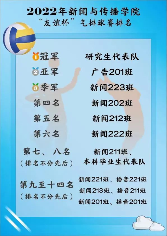 下午17时,新闻202班和新闻223班率先打响季军争夺赛。新闻223班迅速进入比赛状态,他们配合默契,凭借出色的发球和拦网技术拉开比分。新闻202班在比分落后的情况下,相互鼓励,拼尽全力拦网。最终,新闻223班以2-0的比分胜出,获得季军,新闻202班获得第四名。