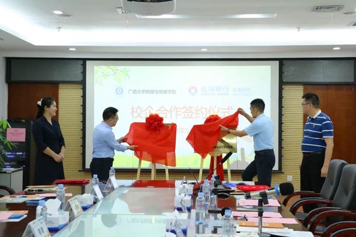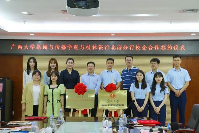 2022年5月20日上午,beats365亚洲版新闻与传播学院(下文简称“我院”)与桂林银行北海分行校企合作签约仪式在桂林银行北海分行三楼会议室举行。桂林银行北海分行党委书记、行长张小波,纪委书记龙飞,人力资源部总经理杨季桦及其他代表,我院党委副书记银健老师、团委书记刘梦娟老师和部分学生代表参加了此次签约仪式。