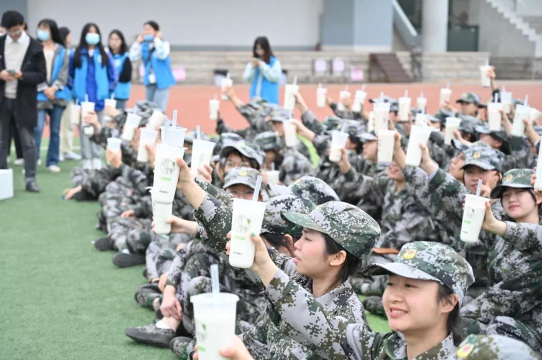 军训使我们以坚强为信念,今天我们一起承受磨炼,明天我们一起迎接彩虹。温暖的奶茶承载着老师们对同学的关爱与期望,同学们一定会报以不屈的意志和昂扬的姿态。加油吧,21级的新闻学子们,相信我们学院的名字一定会出现在“优秀连队”的榜单上!