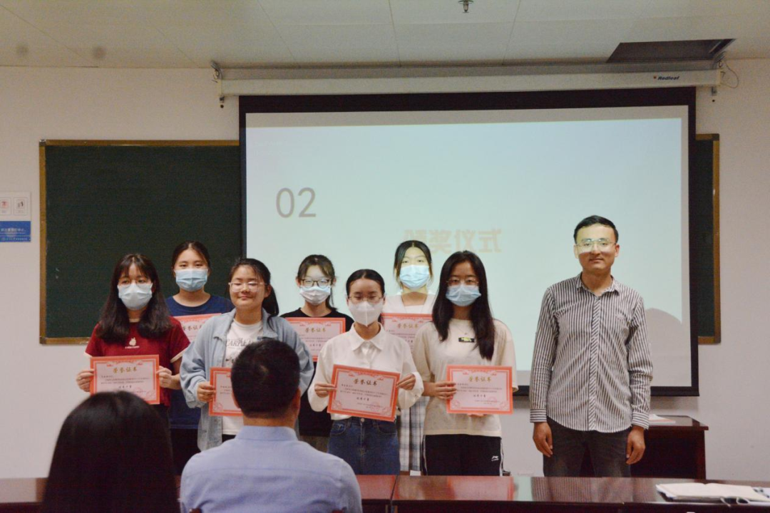 随后,银健老师和王志标老师分别为获得“优秀干部”与“优秀干事”荣誉的同学颁奖并合影留念。