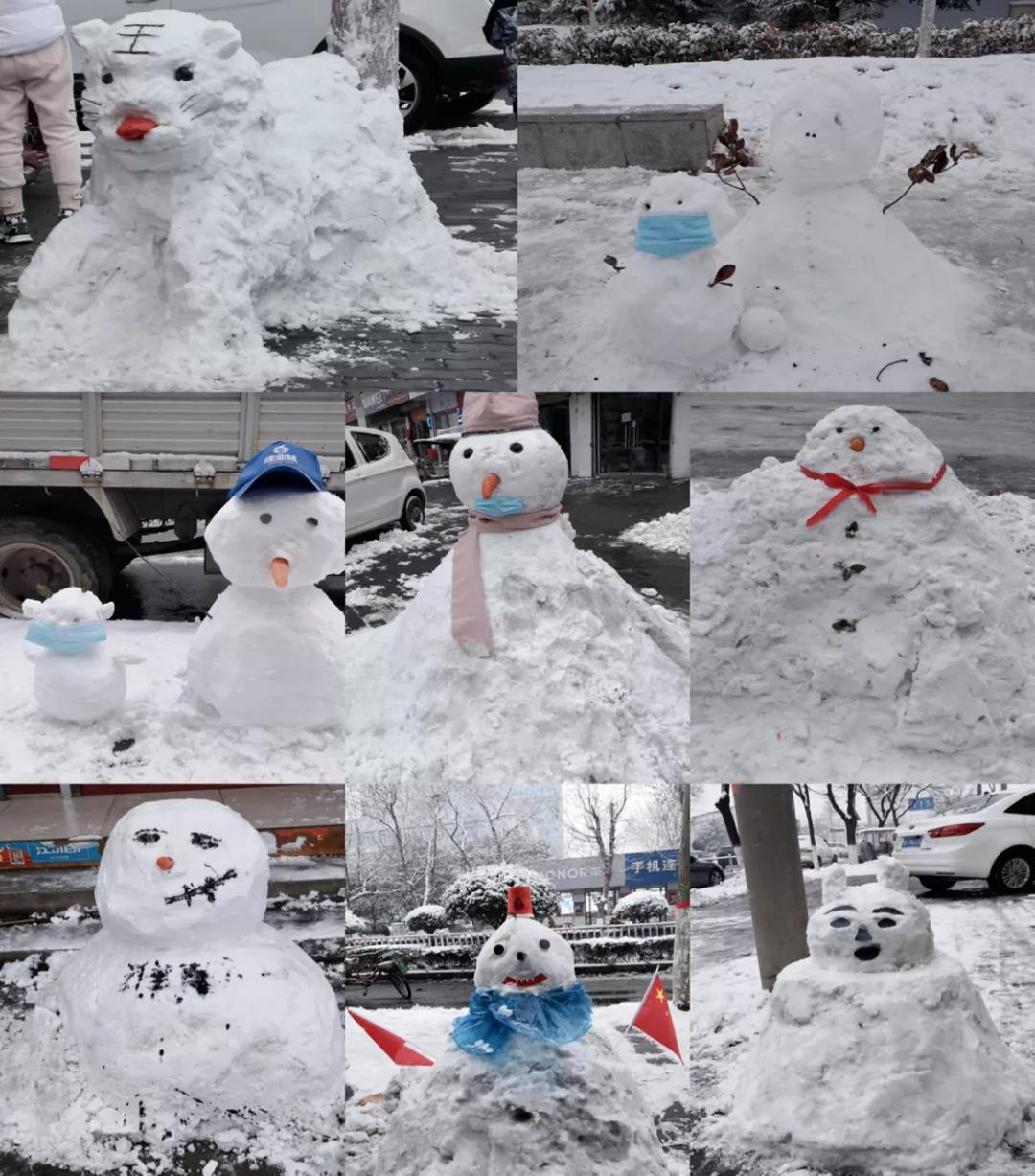 今天是河南下雪的第二天,我和家乡的小伙伴们在街上发现很多地方都已经有积雪了,一路走过来,发现很多有意思的雪人儿,于是我就想拍照记录下这些画面。