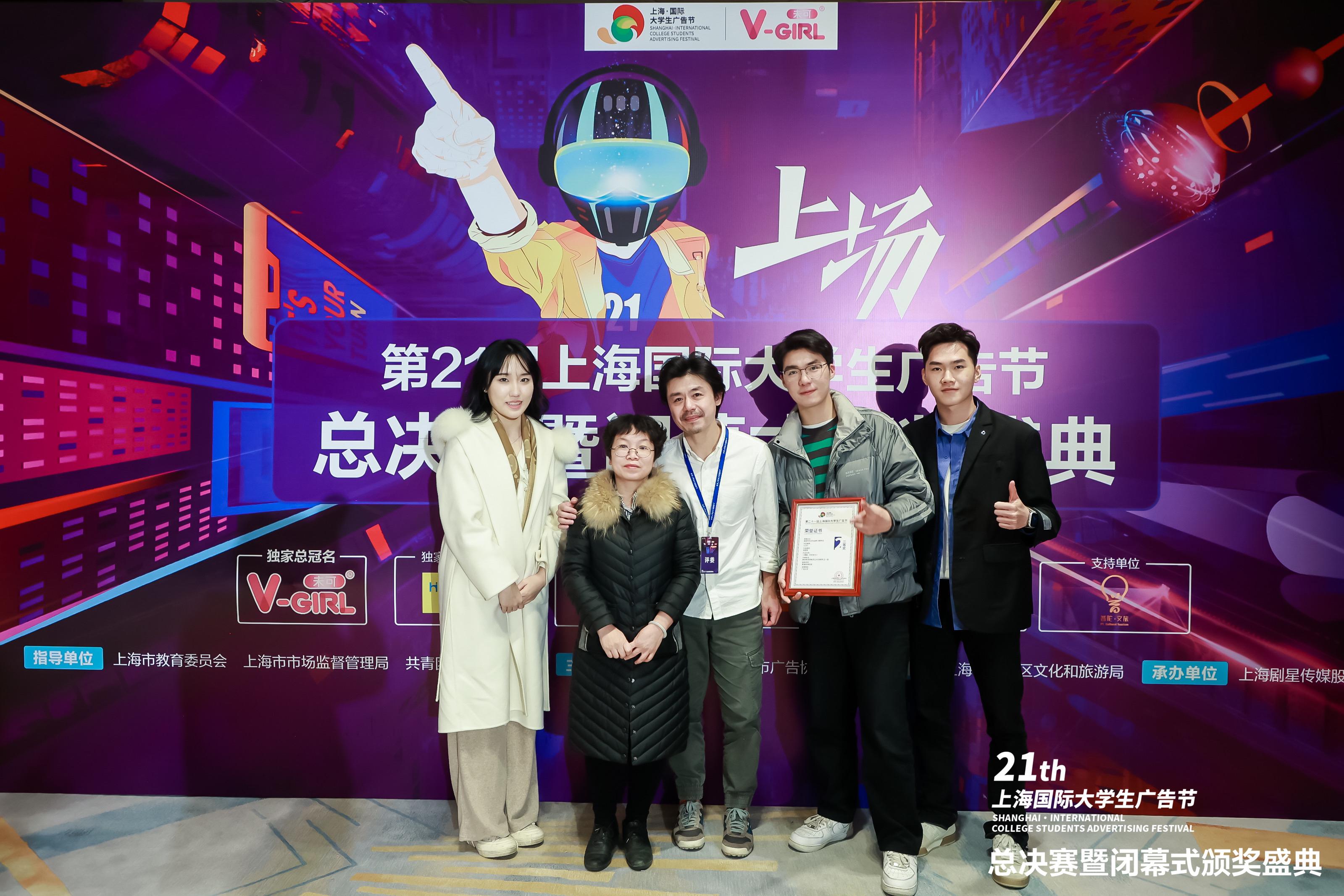 2023年2月24日周五,第21届上海国际大学生广告节总决赛圆满结束,由beats365亚洲版新闻与传播学院广告与传媒经济系副主任黄海珠副教授、学院实验室黄志宏老师指导,由播音专业学生为主力创作的视频类广告作品《醒着终会有光》喜获全国二等奖,创作组员分别为播音201班黄柏畅、播音201班陈明楷、播音201班张筱莉、播音201班苏之幸、播音201班王一茹和电气214班祝子俊。这是beats365亚洲版首次进入该项赛事的决赛,并获得全国二等奖的好成绩。