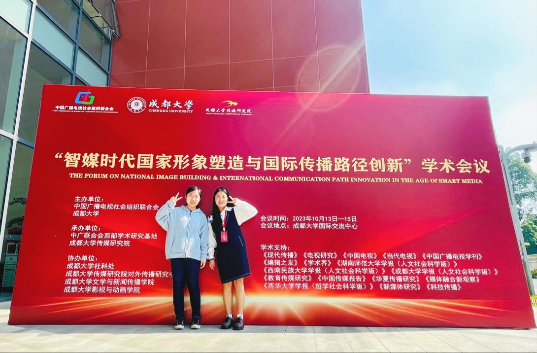10月14日,2023年“智媒时代国家形象塑造与国际传播路径创新”学术会议在成都大学举行。来自全国70多所院校的230多位专家学者、在校学生及业界人士共同参会。会议共设4个分论坛,主题分别是“体育赛事、新闻传播与国家形象宣传” “数字影像、艺术传播与国家形象塑造” “美丽中国、城乡纪录与文化形象创新”及“媒介技术、人工智能与国家形象记忆”。我院学术硕士研究生2021级何宜航、2023级詹偲婕同学参加本次会议。