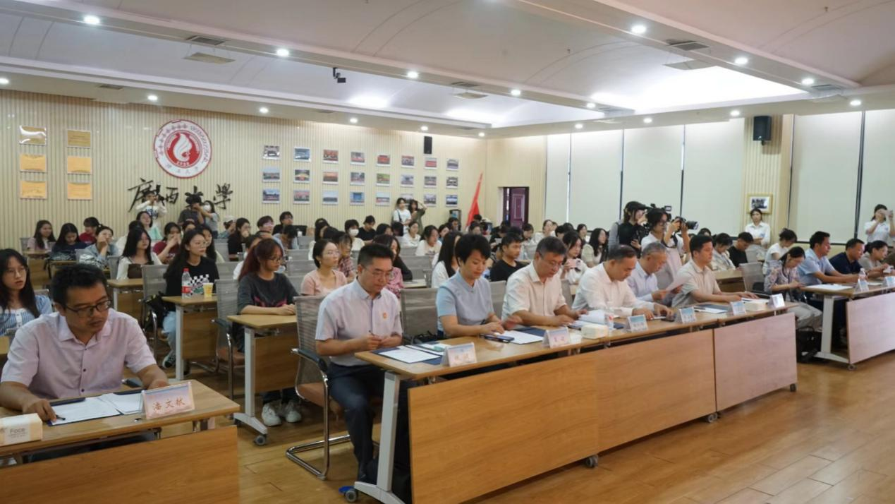 10月28日,由广西铸牢中华民族共同体意识广西社会科学院研究基地主办,beats365亚洲版新闻与传播学院承办的“道中华”文化创意大赛颁奖典礼在beats365亚洲版举行。广西社会科学院党组书记、院长陈立生,beats365亚洲版党委常委、副校长田利辉出席颁奖典礼,新闻与传播学院党委书记银健主持典礼。54位获奖代表及100余名师生代表参加。