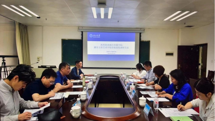 5月10日上午,浙江传媒学院播音主持艺术学院基础教学部主任翟量教授一行5人到我院调研交流,我院党委副书记邓惠英与播音与主持艺术教师代表陪同调研。
