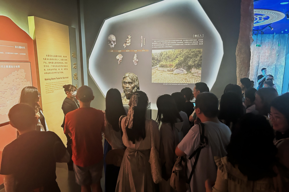 广西历史“悠久、多元、融合、开放、同心”,广西壮族自治区博物馆的展馆内遴选了广西珍贵历史文物,汇集了近年来广西考古的最新研究成果。在参观过程中,同学们认真听取博物馆讲解员的介绍,仔细观看广西古代文明陈列,深入了解广西地区丰富的民族文化。老师引导同学们从民族新闻与文化传播的角度,思考如何更好地传承和弘扬中华优秀传统文化,促进各民族交流交往交融。