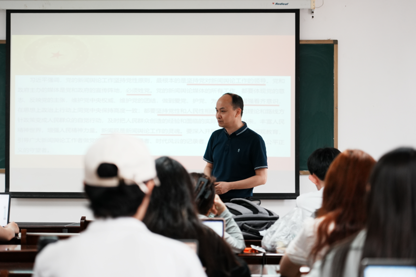 5月28日下午,马克思主义新闻观原著阅读小组学习辅导会在我院507教室举行,副院长王辉为同学们解读习近平总书记在党的新闻舆论工作座谈会上的重要讲话。