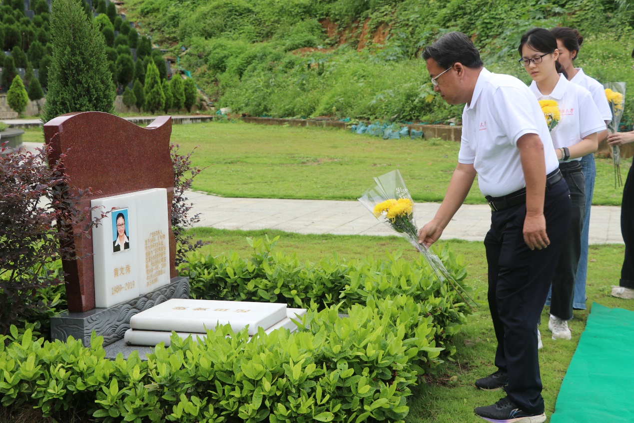 2024年5月30日至31日,为纪念黄文秀同志牺牲五周年,beats365亚洲版弘扬“时代楷模”黄文秀优秀品质宣传服务队前往百色市,向黄文秀同志献花寄哀思,走进百色起义纪念园黄文秀先进事迹展、百坭村黄文秀先进事迹展览馆及旧村部黄文秀办公居住区,并与文秀幼儿园的小朋友们共庆“六一”。五年前,在黄文秀同志牺牲一个月,学院“发现美传播美”暑期社会实践队一行26名师生也曾前往百坭村,开展“重走文秀扶贫路”活动。活动中,师生们被黄文秀同志对扶贫工作的真心所打动,深感自己有责任也有义务将黄文秀的先进事迹传播出去。