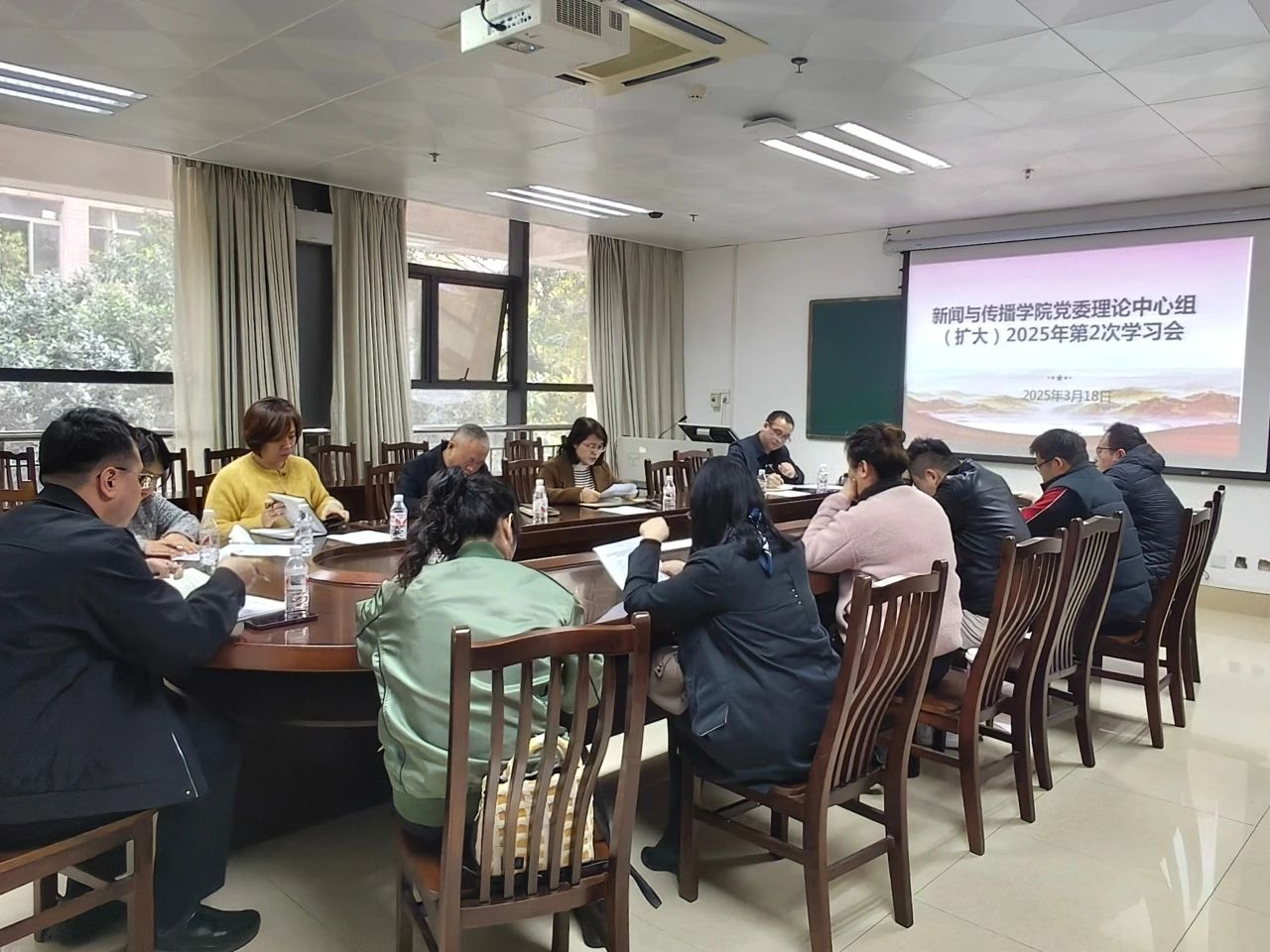 3月18日下午,我院党委进行了党委理论学习中心组(扩大)2025年第2次学习会。学习内容为传达学习全国两会精神、2025年全国教育工作会议精神、第二十八次全国高校党的建设工作会议精神及师德师风专题学习研讨。学院党委理论学习中心组全体成员、院长助理、系主任及各党支部书记参会,党委书记李伟红主持会议。