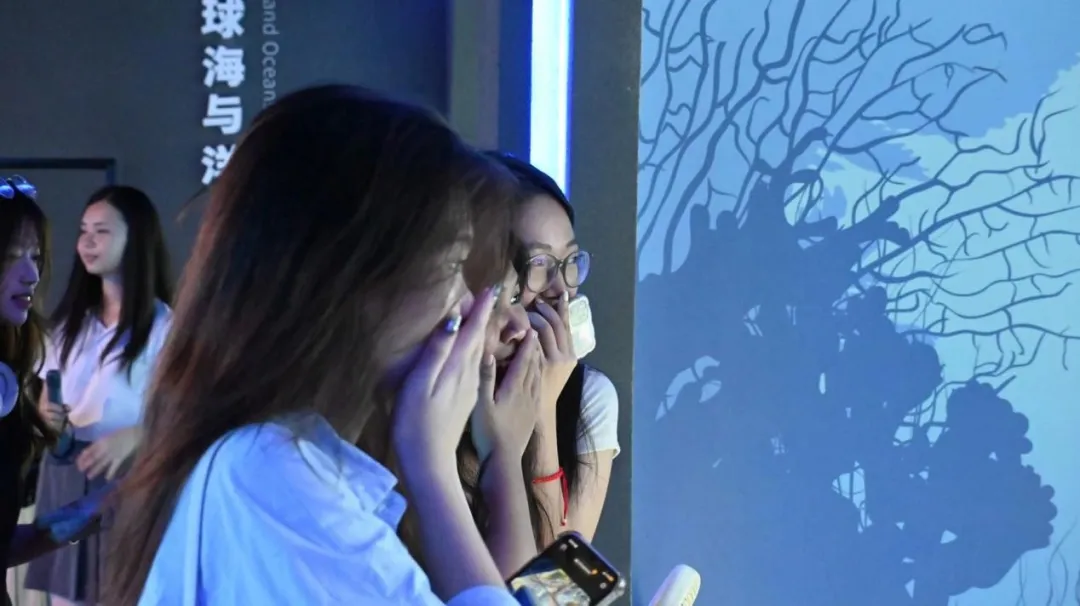 在新闻与传播学院,越南河内大学中越师生围绕媒体实践展开热烈讨论,越南学子对学院融媒体实验室的创新成果表现出浓厚兴趣;走进海洋科教馆,双方共同了解珊瑚礁人工种植、红树林生态保护等科研成果,感受中国在海洋生态领域的探索与实践;参观广西日报社平陆运河报道成果展时,越南学生通过融媒作品直观感受到了中国重大工程的传播魅力,纷纷用镜头记录“了不起的中国工程”。