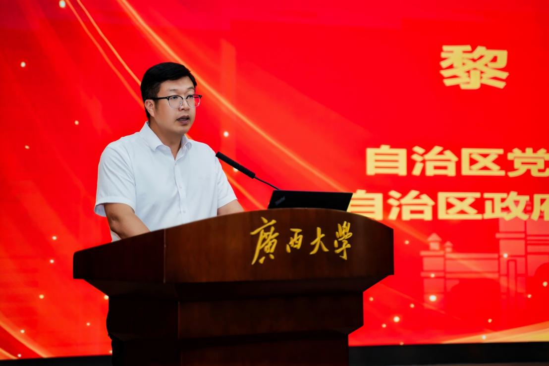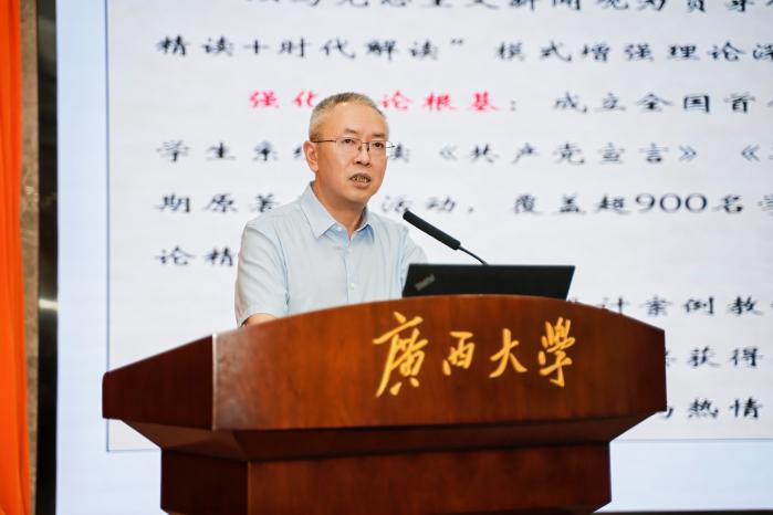 赵双良在致辞中阐释了广西高校马克思主义新闻观教育联盟成立的时代意义。他指出,联盟成立既是深入贯彻落实习近平文化思想和习近平总书记关于教育工作、新闻舆论工作重要论述精神的关键行动;也是守正创新推进广西新闻传播教育高质量发展的关键落子;更是汇聚八桂力量,共同应对新时代意识形态领域挑战,锻造一支政治坚定、业务精湛、作风优良、党和人民放心的新闻工作后备军的战略之举,必将推动全区新闻教育事业再上新台阶、迈向新高度。