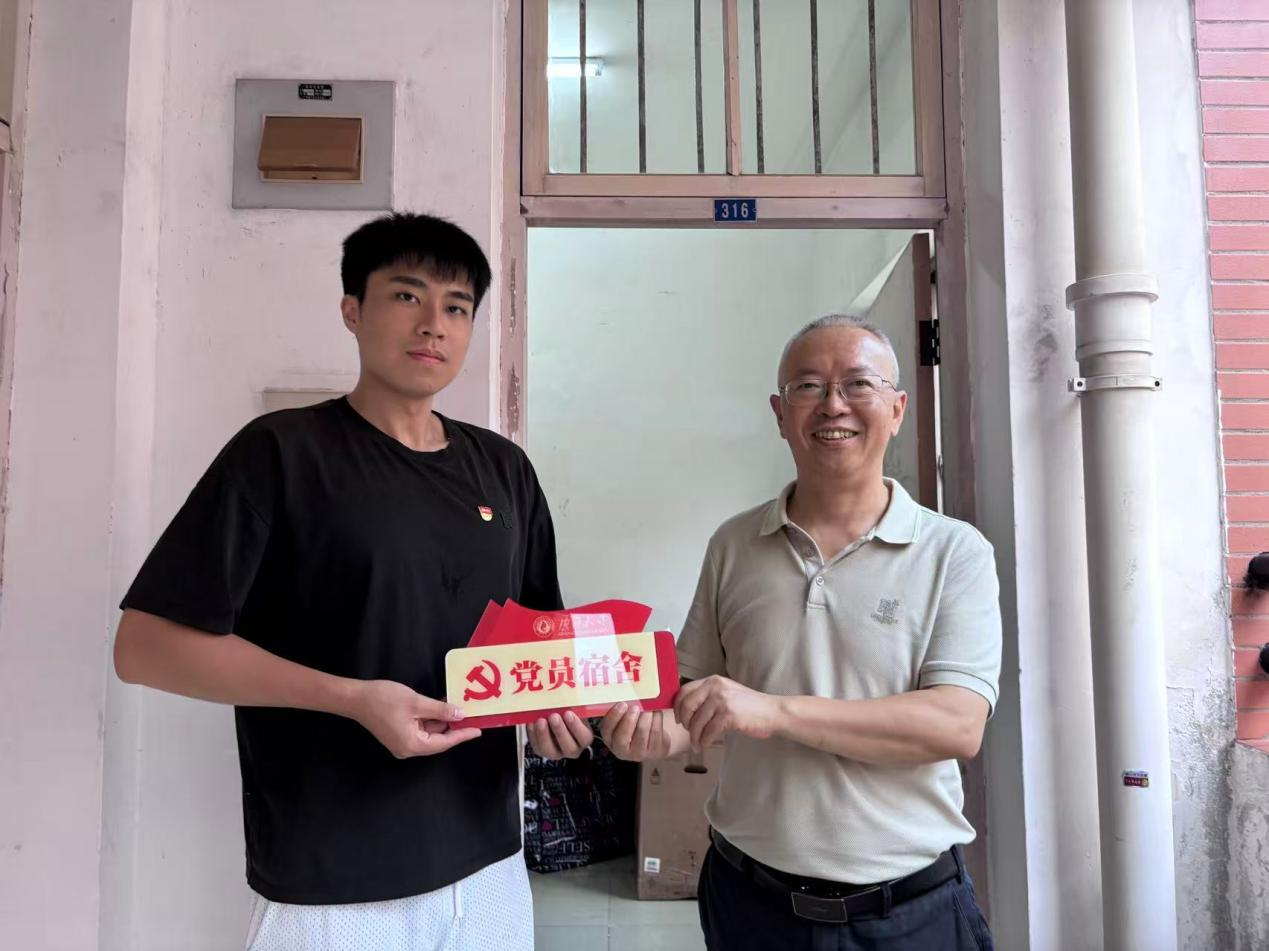 “学院是我们共同的家,遇到任何困难都要第一时间告诉辅导员。”党委副书记邓惠英的这番话,让刚刚离家入学的学生逐渐放下拘谨。领导老师们还特意检查宿舍设施,并反复叮嘱同学们注意蚊虫防护、防骗防诈。在有党员入住的新生宿舍里,领导老师们为其授予 “党员宿舍” 标识牌。挂牌后,老师们与宿舍内的新生党员共同合影,用镜头留存下饱含关怀的画面,同时以此激励新生党员切实履行党员责任,发挥好先锋带头作用。