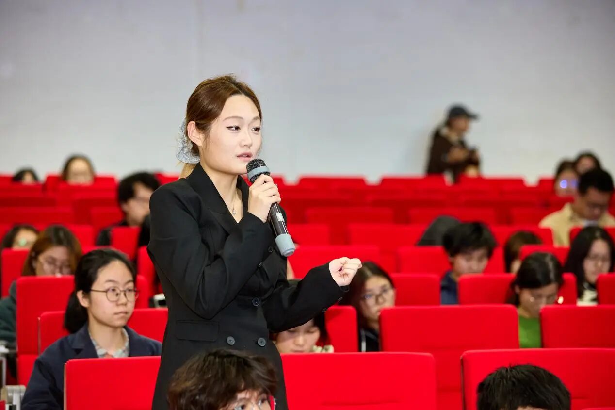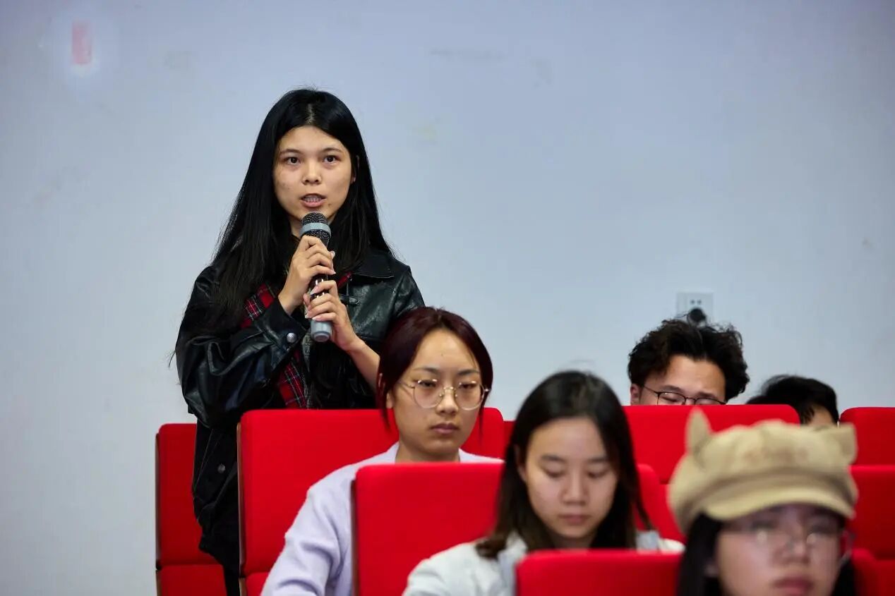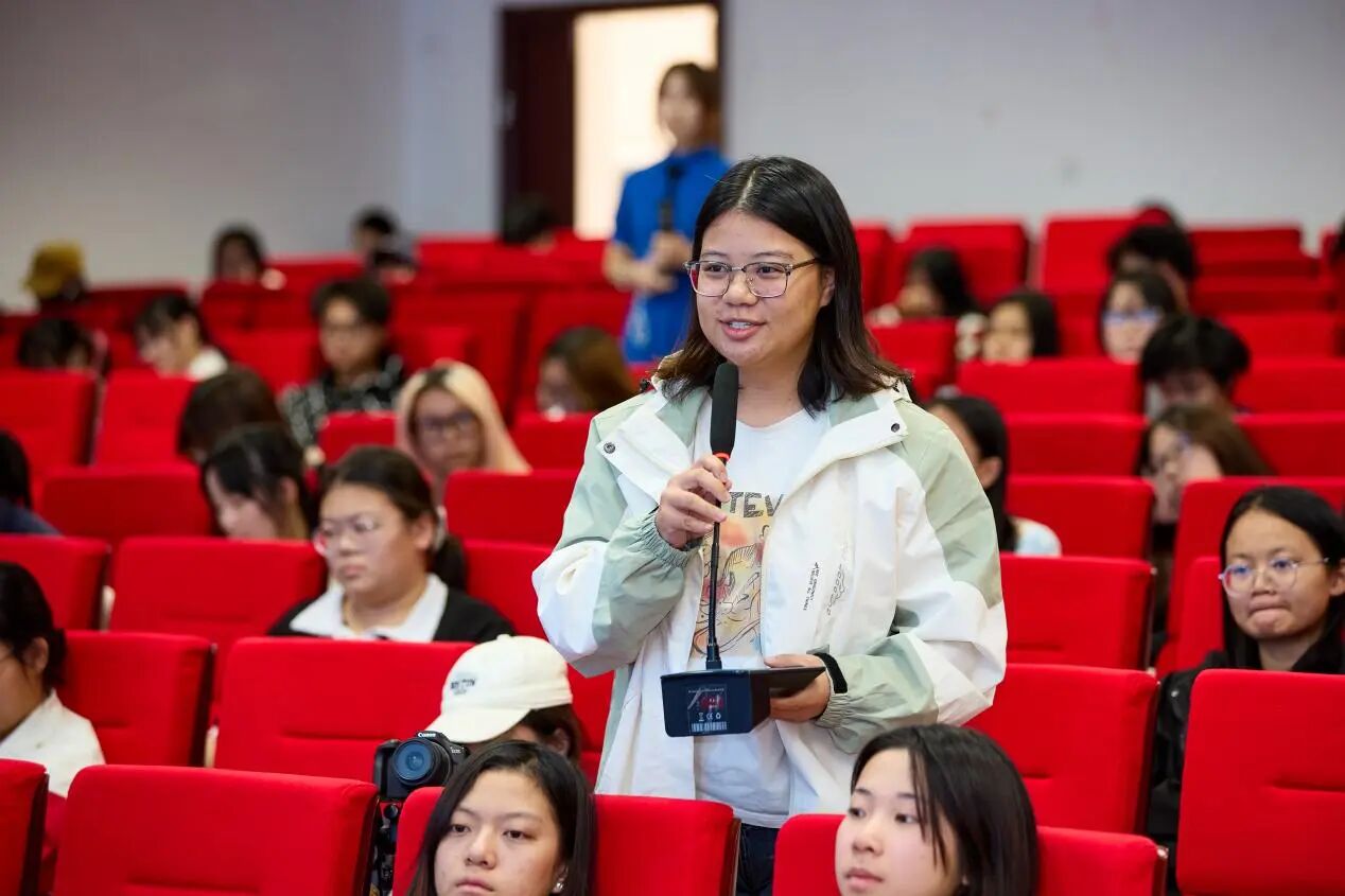 互动交流环节,新华社广西分社记者农冠斌、黄凯莹结合实战经历,生动讲述了新闻背后的故事,阐释了新华社记者坚守初心、深入现场的使命担当,分享了全媒体时代记者的职业素养与报道方法。在互动交流中,同学们围绕国际传播、媒体融合、AI技术应用等前沿议题,与记者展开热烈互动。