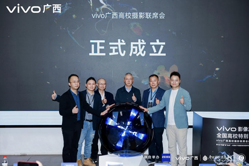 在启动仪式的倒计时中,与会嘉宾共同点亮启动球,宣告vivo广西高校摄影联席会正式成立。这不仅象征着一个全新协作平台的扬帆起航,更标志着广西高校影像教育与移动影像技术深度融合的新篇章已然开启。