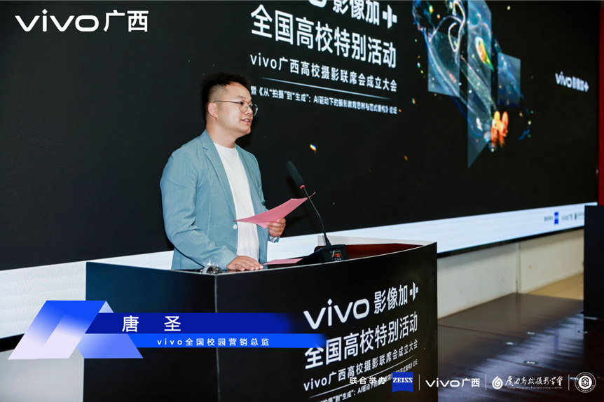 vivo全国校园营销总监唐圣阐述了“人文之悦”的品牌理念,强调vivo将持续通过技术创新降低创作门槛,以设备、课程与活动支持青年影像探索。
