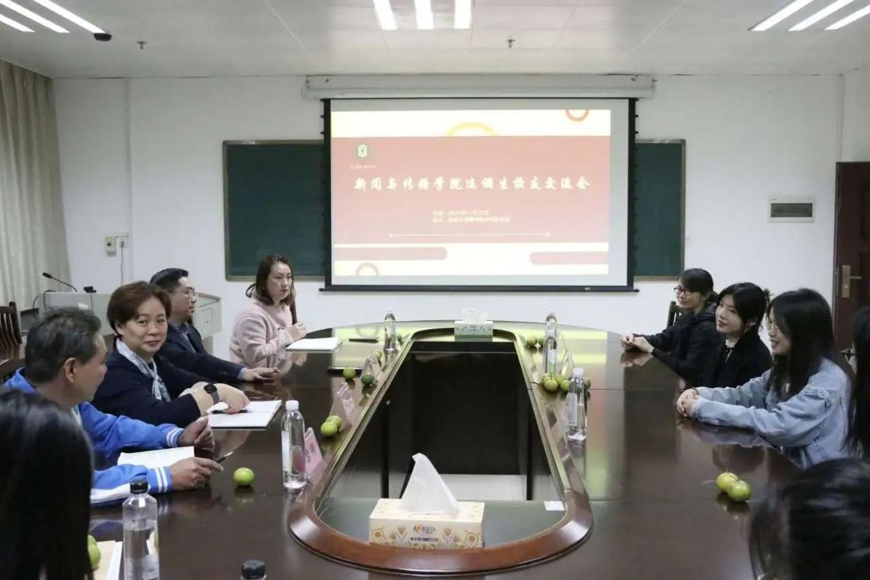11月30日上午,我院在学院209教室举办选调生校友座谈交流会。本次座谈会邀请到我院2021级学硕蒋珊珊和2017级新闻学本科生欧阳雨田两位选调生校友代表,她们分别围绕自己的工作经历和感悟进行了座谈分享。学院党委书记银健,党委副书记邓惠英,团委书记刘梦娟,学工组辅导员黎明老师、胡新梅老师出席活动,学生党员代表参加座谈会。