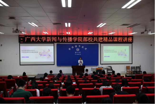 6 月 24 日上午,新闻与传播学院播音与主持艺术系教授、《普通话语音与播音发声》课程负责人李朝珍邀请前360高级总监、我院1994级新闻学本科生、1998级新闻学硕士生校友覃艳在学院西报告厅做主题为“由互联网至 AI 时代——内容品牌化的路径探索”的讲座。