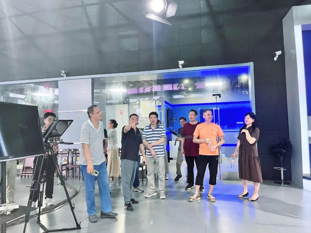 会后,岳晓华教授陪同校友们参观了我院的融媒体中心、全媒体交互式演播中心以及记录学院发展历程的文化墙。在参观过程中,岳教授详细介绍了近年来学院在媒体融合创新、实践教学升级等方面取得的突破性进展