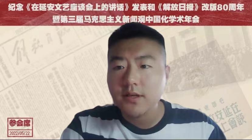 5月22日下午,我院2019级硕士研究生鲍精华参加由陕西师范大学新闻与传播学院主办的“纪念《在延安文艺座谈会上的讲话》发表和《解放日报》改版80周年暨第三届马克思主义新闻观中国化学术年会”,并作报告《刻画交往:社交媒体的底层传播逻辑——基于马克思精神交往论的视角》。