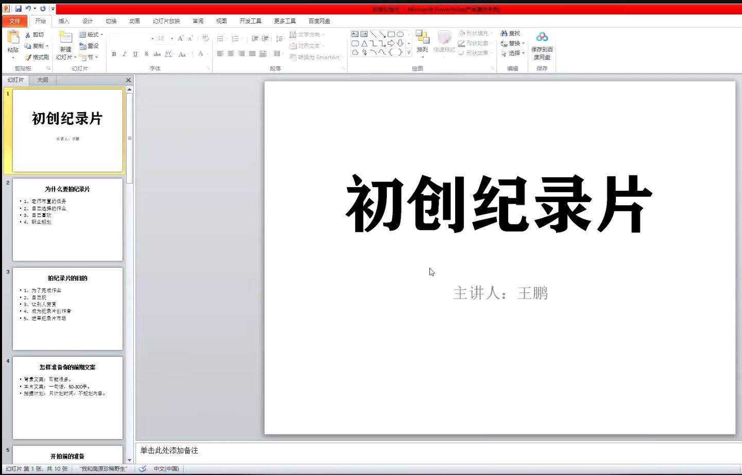讲座伊始,王鹏导演首先介绍了纪录片需要准备的前期文案,包括背景文案、本片文案和拍摄计划。他强调纪录片的文案以简洁为主,一句话说清作品的内容与核心。