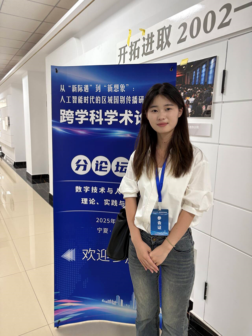 6月7日,从“新机遇”到“新想象”:人工智能时代的区域国别传播研究跨学科学术论坛在宁夏大学举办。在李庆林教授指导下,我院2024级研究生朱淑雨参与论坛并宣讲论文。