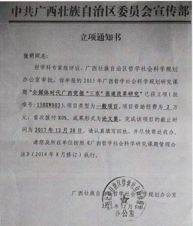 我院张明副教授2015申报广西哲社项目获立项