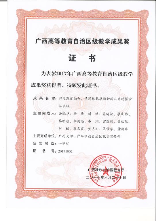 新闻传播学院2017年喜获广西壮族自治区教学成果一等奖