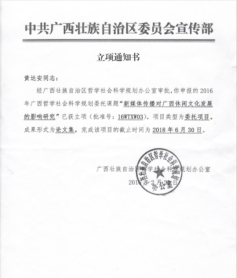 我院黄达安博士2016年申报广西哲社项目获得立项