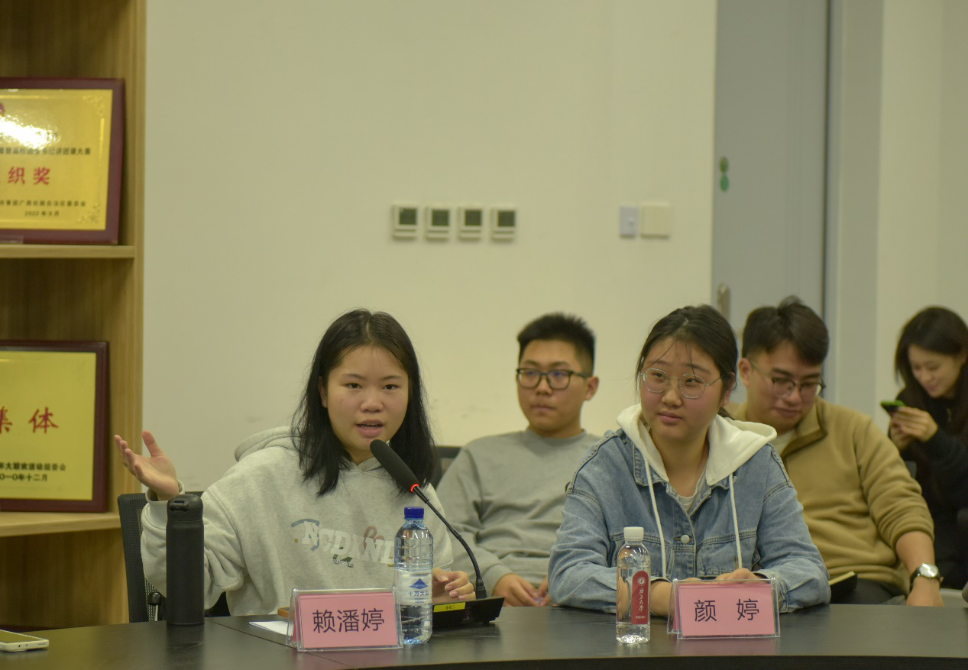 新闻231班的赖潘婷则分享寒假社会实践活动在社区开展志愿服务的经历,她表示雷锋精神照耀了一代又一代人,未来将继续学习雷锋精神,向外辐射正能量,帮扶他人,用奉献、奋斗、忠诚、热情等品质充实自己。
