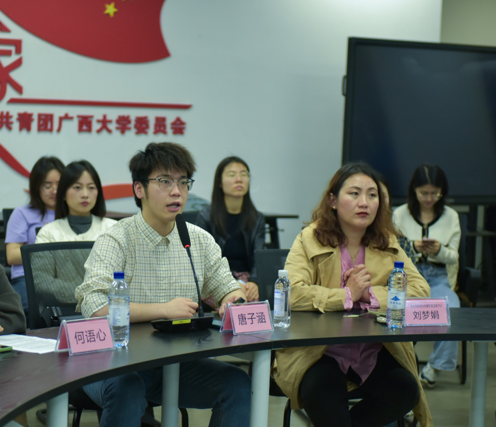 青年学子要做新时代的“螺丝钉”,传递出新时代的“好声音”,这也正呼应着我院的院训“守正出新,求真传美”。会上,我院学生阿西木江·麦麦提、唐子涵、李路怡、赖潘婷、颜婷、杨凯淇、何语心7名青年志愿者代表结合自身志愿服务故事,分享志愿服务体会,传递志愿服务精神与青年担当。