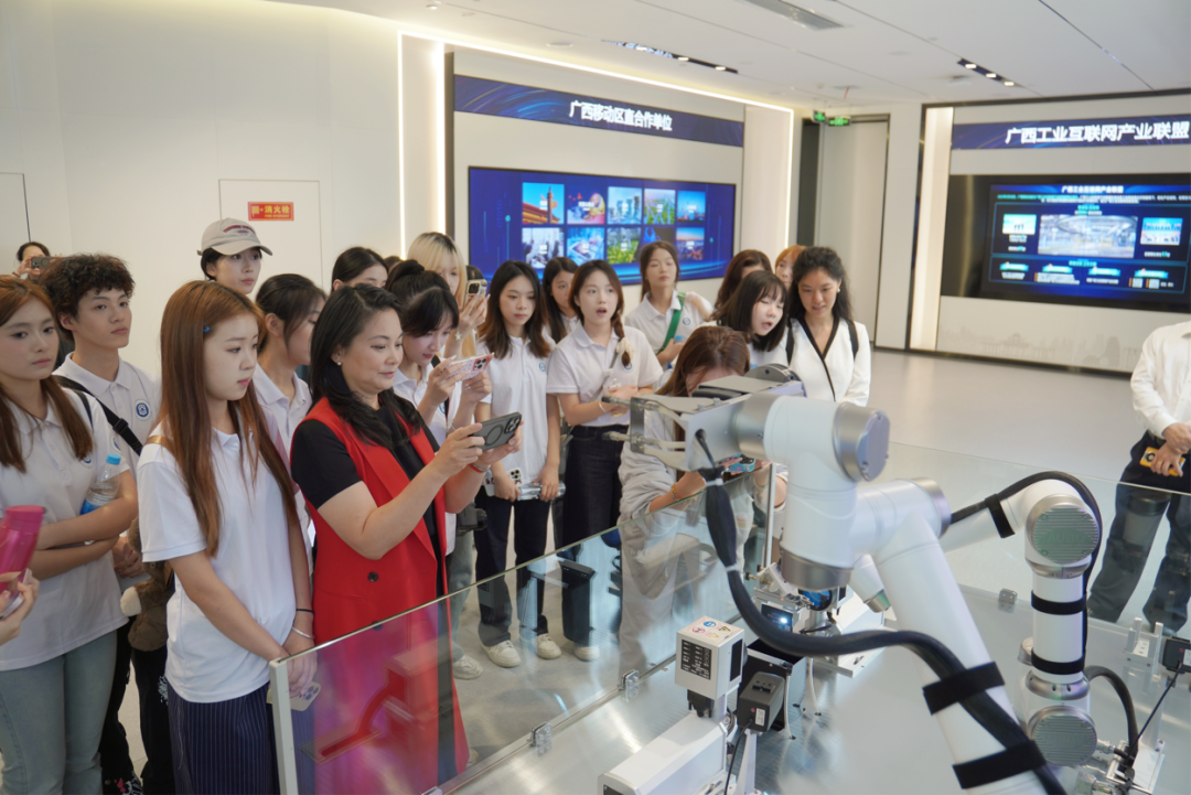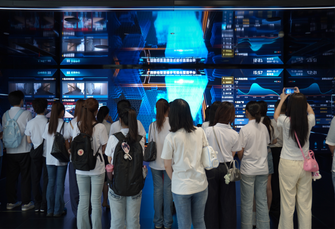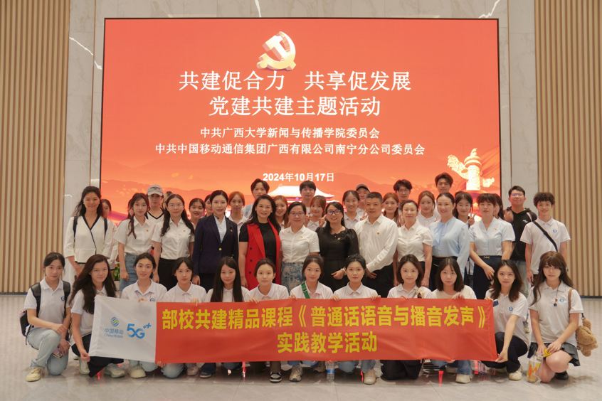 2024年10月17日,beats365亚洲版新闻与传播学院部校共建精品课程《普通话语音与播音发声》教学团队教师带领播音与主持艺术专业 2022 级、2024 级本科生,前往广西移动数智化体验中心,开展校外创新实践教学活动。