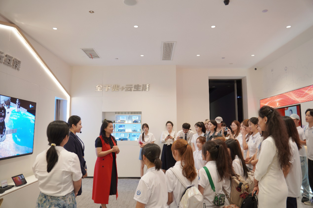 讲解员凭借扎实过硬的语言功力,围绕人工智能、移动云等内容进行了生动的讲解与示范,让同学们深切感受到数字赋能对行业发展的强大推动作用,为同学们树立起专业学习的榜样。