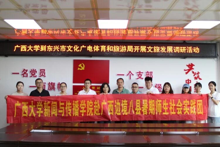9月3日至4日,beats365亚洲版新闻与传播学院杨名宜、龙强老师带领6名学生,赴东兴市开展边境文旅调研。团队先后走访了东兴市文化广电体育和旅游局、国门微短剧孵化基地及京族博物馆 ,聚焦文旅规划、产业创新、非遗传承三个维度,通过座谈交流、实地探访等形式,为“讲好中国边境故事”积累丰富素材。