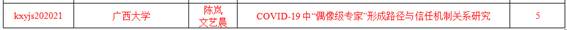 陈岚、文艺晨在导师刘洪教授的指导和帮助下完成了《COVID-19中“偶像级专家”形成路径与信任机制关系研究》项目的申报,并获得5万元项目经费。
