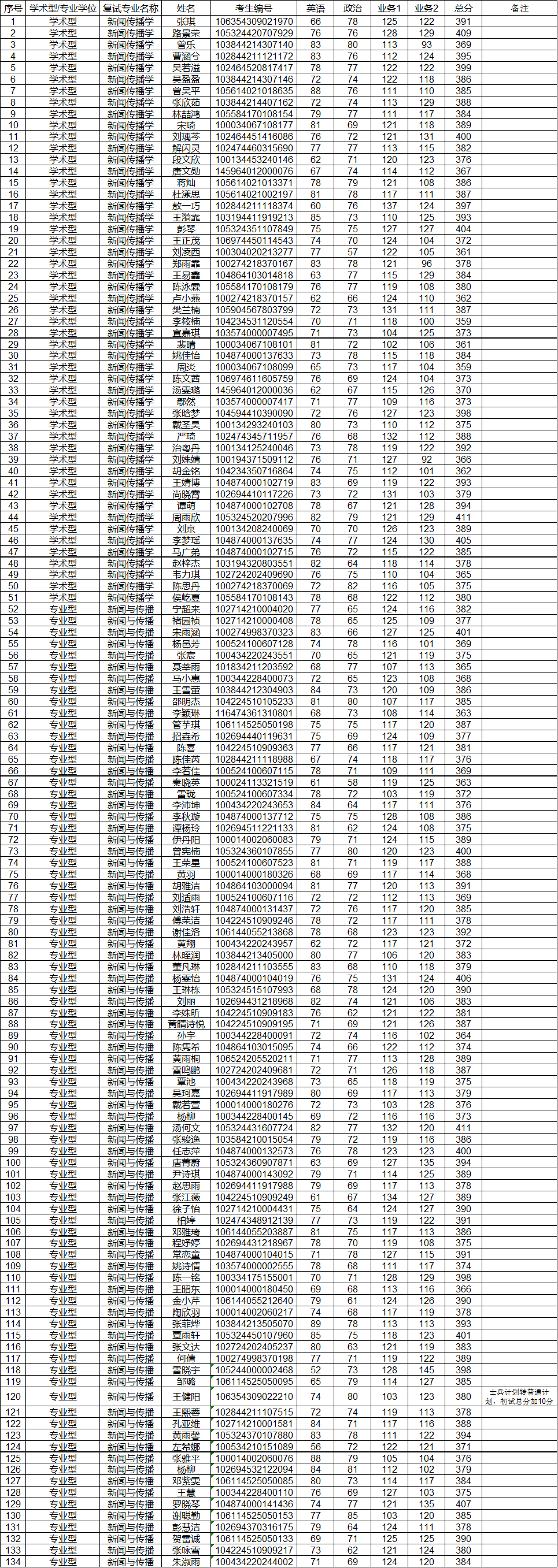 各位考生: 学院根据《beats365亚洲版新闻与传播学院2024年硕士研究生招生复试实施细则》中的调剂基本条件,对申请同一专业、初试科目完全相同的调剂考生,按考生初试成绩择优遴选,现公布我院新闻传播学、新闻与传播调剂考生进入复试的名单。名单如下: