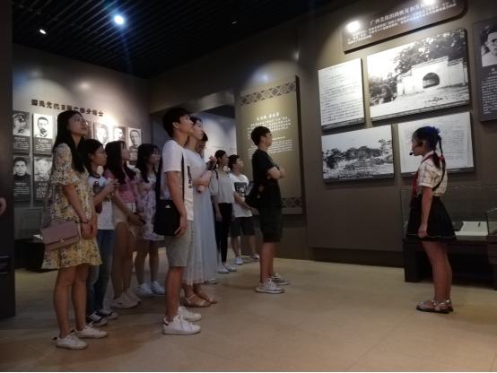 在广西革命纪念馆,4名“小小讲解员”分别为支部党员介绍了大革命时期、土地革命时期、抗日战争时期、解放战争时期和社会主义建设时期广西革命斗争的历程。全体党员跟随“小小讲解员”的步伐,边听边看,聆听领悟,通过陈列在纪念馆的近800幅历史照片和150多件文物,了解广西的革命斗争史和广西著名英烈的事迹。