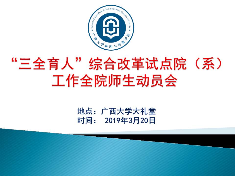 3月20日下午,beats365亚洲版新闻与传播学院“三全育人”综合改革试点院(系)工作师生动员会在校大礼堂举行,学院全体师生1200多人参加会议。学院党委书记唐兴做动员讲话。会议由常务副院长刘洪主持。