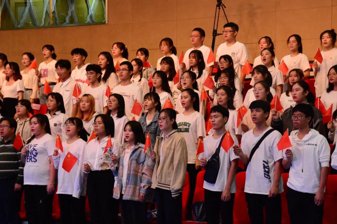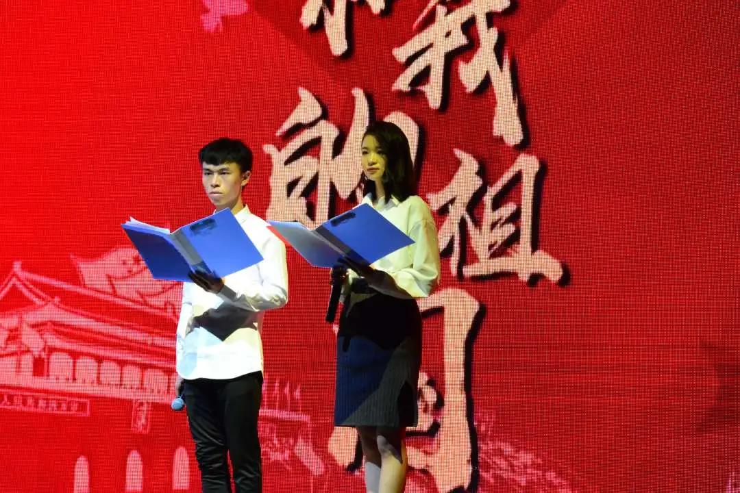 “长江大桥破天险,康藏高原把路开,三门峡上工程大,哪怕它黄河之水天上来。”在讲解员声情并茂的朗诵后,在场师生一起欣赏了歌颂新中国,震撼人心的经典之作——《祖国颂》。接着,新闻172班、182班、192班、202和203班分别演唱了《我的祖国》《我爱你中国》《我和我的祖国》《今天是你的生日我的中国》。同学们挥动着手中的国旗,台上台下齐声应和,活动现场歌声不断,掌声不断。