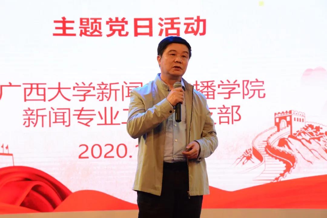 院党委书记唐兴老师用“三个结合”对本次活动进行了点评。他认为,此次主题党日活动是学院所倡导的马克思主义新闻观教育和爱国主义教育的有机结合,是党支部主题党日活动和学生日常思想政治教育的有机结合,是德育与美育的有机结合。同时,他也为同学们精彩的表现点赞。
