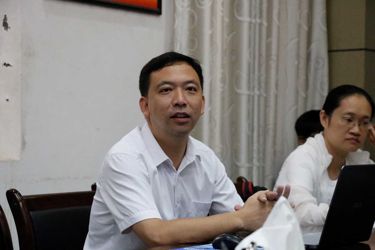 百色市委宣传部新闻科邓暘科长在座谈中介绍黄文秀先进事迹宣传报道的情况