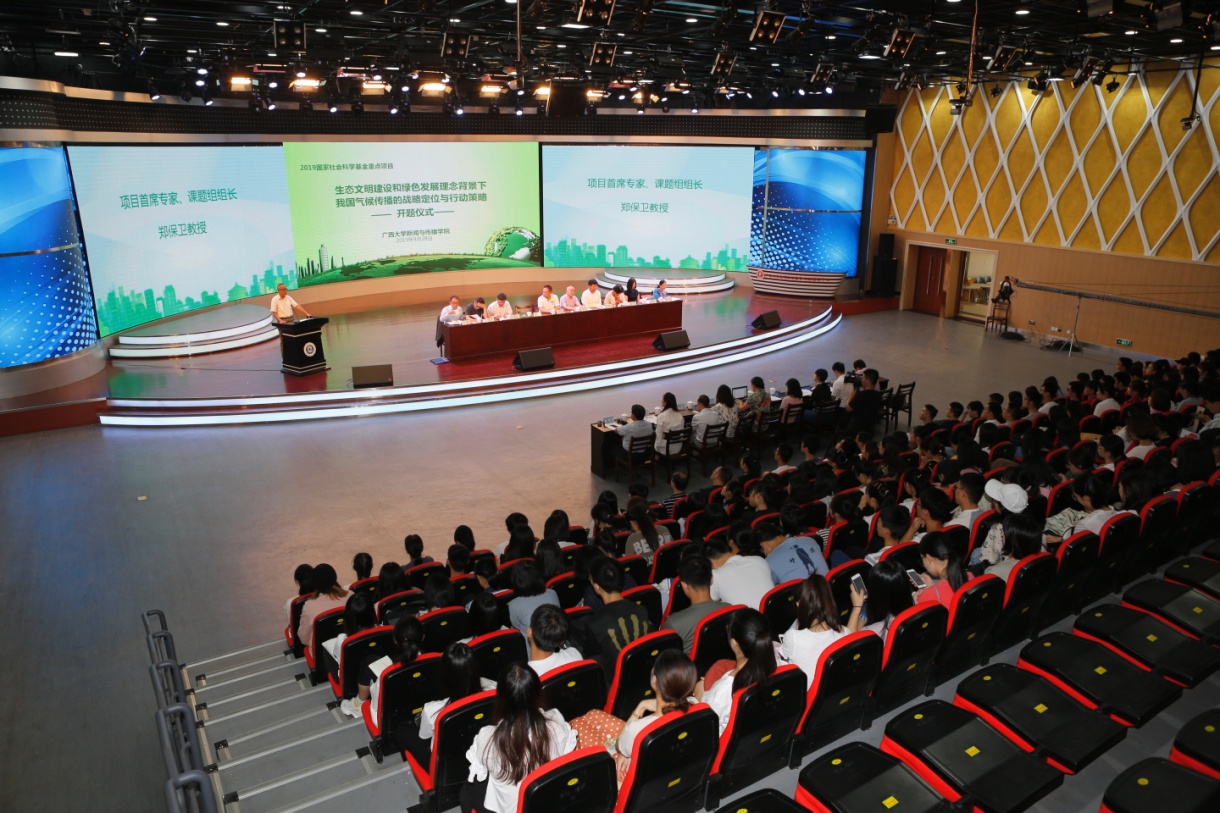 9月28日,由院长郑保卫教授主持的2019国家社科基金重点项目“生态文明建设和绿色发展理念背景下我国气候传播的战略定位与行动策略”,在我院举行开题论证会。来自清华大学、国务院新闻办、中国气象局、中国新闻社等单位的七位专家,为国家社科基金第一个气候传播重点项目进行开题论证。beats365亚洲版社科处处长蒋超出席了论证会的开题仪式并致辞,项目首席专家、课题组组长郑保卫教授介绍了课题的立项背景、由来和研究内容,开题论证专家组组长清华大学李希光教授发表了讲话,新闻与传播学院常务副院长刘洪代表学院作表态讲话。专家组成员、项目组成员、beats365亚洲版气候与健康传播研究中心全体成员、师生代表共二百多人参加了开题仪式。开题仪式由学院党委书记唐兴主持。