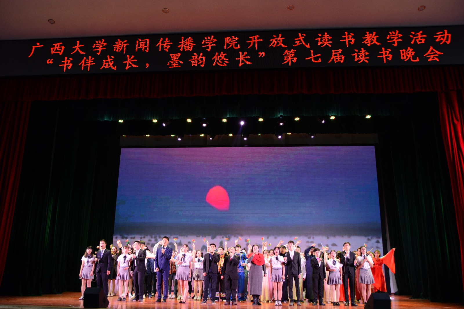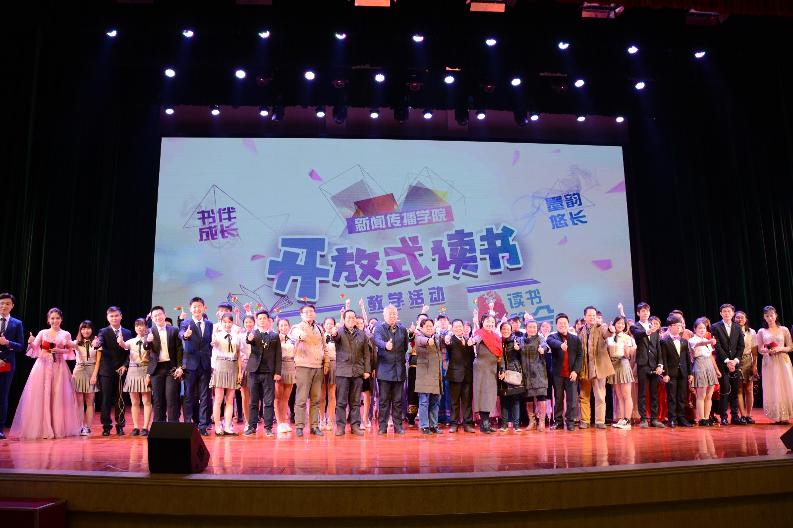 12月19日19时30分,beats365亚洲版新闻传播学院开放式读书教学活动第七届“书伴成长,墨韵悠长”读书晚会在大礼堂举行。自治区党委宣传部张超、学校党委宣传部副部长谢能重、学校学生工作部(处)副部(处)长严壮锋、学院党委书记唐兴、常务副院长刘洪、学院党委副书记曾海艳、副院长银健、副院长李庆林、副院长吴海荣以及全院研究生、本科生参加了此次活动。