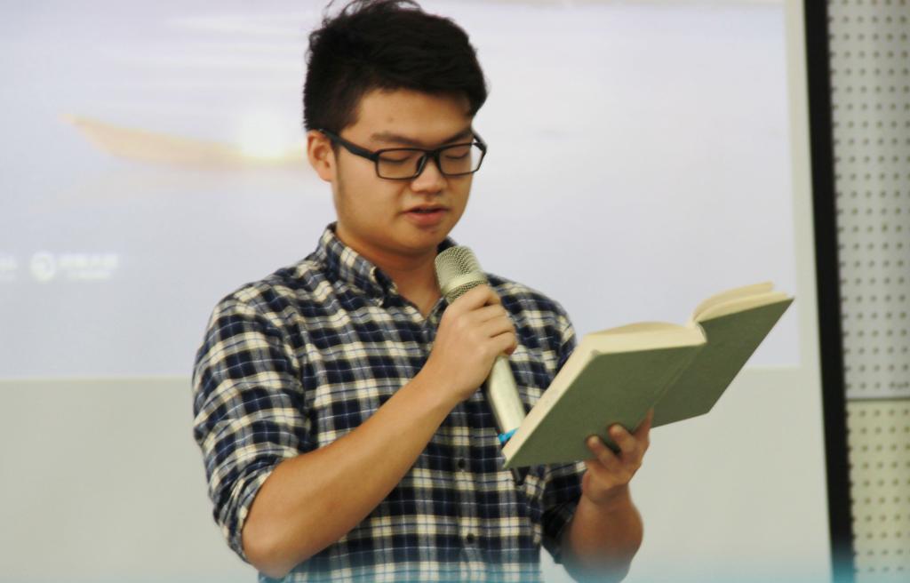 活动进入到“你最喜欢的一本书”分享朗诵环节,两名新闻传播学院的学生代表以朗读的形式推荐书籍。来自新闻151班的蒙思思同学为大家推荐了《白说》,她认为阅读其实是包容,包容是阅读的的另一种趣味。没有包容就没有如果。新闻161班的李西铨推荐了书籍《每个人都是一个宇宙》,“我们读一本,到精彩处,往往情不自禁地喊出声,这是我的思想,这正是我想说的,被他偷去了,沉睡的感受唤醒了,失落的记忆找回了,朦胧的思绪清晰了其余的,都只是外在于灵魂有机生长过程的无机物。”